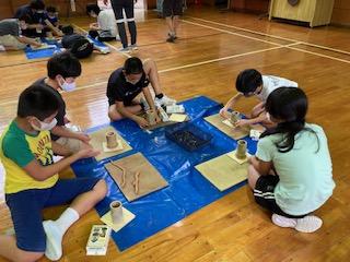 午後からの竹取物語(おがくず粘土細工)活動では,立体にするのがとても難しく,友達同士で話したりアドバイスしあって,形にしようと協力して頑張っていました。