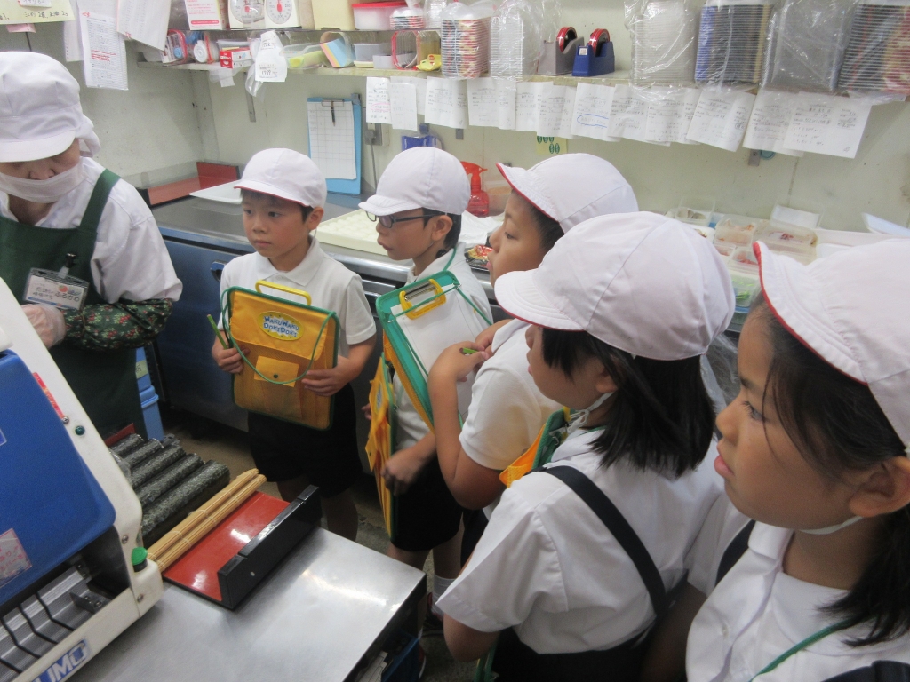 9月18日(水)3年生が社会科見学でスーパーマーケットの見学に行ってきました。店員さんの案内のもと,普段見られないお店の裏側や,そこで働く店員さんの様子を見学することができました。見学の最後には,自分でジュースを買いました。持ってきたお金で買い物をする姿はとても嬉しそうでした。