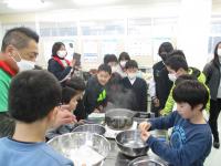 2/22(木)全校で白玉団子づくりをしました。いつも若山小学校で炊き出しの支援をしてくださっているボランティア団体の方が、準備をしてくださいました。久しぶりの調理実習に、子どもたちは大喜びでした。白玉団子は甘いお汁粉にしていただきました。いつも子どもたちのために、優しいお心遣いをありがとうございます。