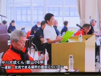 親子議会 投稿日時 : 2024/08/03 校長 7月31日(水)、珠洲市親子議会が市産業センターで行われました。子ども議員からは、能登半島地震の体験から考えさせられたこと、また、たくさんの人から温かい支援していただいたことに感謝し、自分たちにできることをやっていきたいという強い思いが感じられました。 Tweet {{options.likeCount}} {{options.likeCount}} 0 コメント