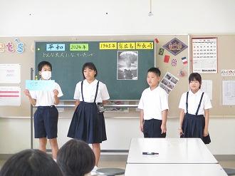 8月6日(火)、全校登校日。平和集会がありました。平和について考える中で、どんな大人になっていたいか、どんな力を身に付けていくことが大切なのかを話し合いました。
