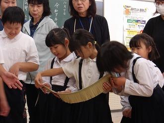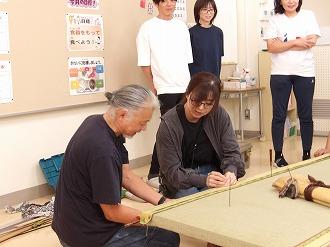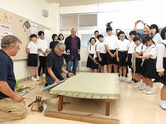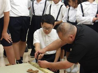10月7日(火)、親子行事がありました。ものづくりマイスターの方々にお世話いただき畳作りを行いました。畳はどのように作られるのか、いつから使われているのか、畳のよさは何か等、さまざまなことを教えていただきました。実際に畳の表替えにも挑戦しました。一針一針にその難しさを実感し、それでも自分の手で畳ができていくおもしろさを体験することができました。「百聞は一見に如かず」。貴重な体験となりました。ありがとうございました。