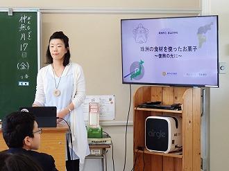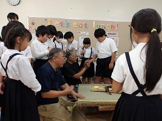 10月17日(金)、5・6年生の総合的な学習の時間にゲストティーチャーとして、メルヘンに日進堂の石塚愛子様にお越しいただきました。お菓子作りへの思い、珠洲を愛する思いについてお話をお聞きすることができました。また、今、子供たちが地域の方へのプレゼントとして試作中のお菓子を試食してもらい、さらにおいしくなるためにはどうすればいいかアドバイスもいただきました。お忙しい中、有難うございました。