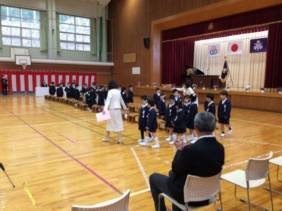 令和5年度の入学式が行われ、34名の元気でかわいい1年生を迎えました。式の中で担任の先生方から名前を呼ばれた1年生は、一人一人はきはきと返事をしていました。2~6年生も新しいわけっこ仲間が増え、とても嬉しそうでした。