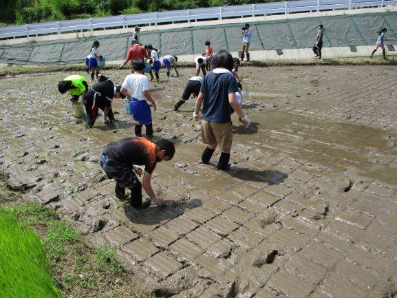 1、2年生が、さつまいもの苗植えをしました。今年も、地域の方の畑をお借りして行い、一人一人が丁寧に苗を植えました。昨年は、8月にあった大水のため、苗が流されとても残念な思いをしました。今年はそのようなことがないように、たくさん収穫できるようにと願っています。