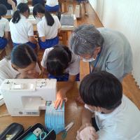 5年生の家庭科で、ミシンを使った授業を行いました。初めて使うミシンに子どもたちも最初は恐る恐るの様子でしたが、だんだん慣れてくると上手に動かすことができていました。学校運営協議会に依頼して、今回も地域の先生方に支援に入っていただきました。ミシンの動かし方を丁寧に教えていただいたおかげで、上手に返し縫いまでできるようになった子がたくさんいました。ご支援いただき、ありがとうございました。