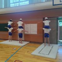 3分間でどれだけの回数を全員で跳べるか、挑戦です。始める前に円陣を組んだり、みんなで掛け声を出して跳んだりするなど、どの学年もチームワークがたいへんすばらしく感動しました。これまでみんなで練習を重ねてきたことを信じ、みんなで息を合わせた集中力にも目を見張るものがありました。