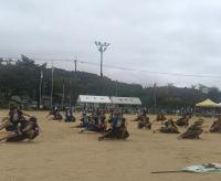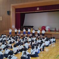 次に、赤団と白団に分かれて、応援練習を行いました。応援団の子どもたちが先頭を切って声を出し、どちらの団もみんなで声や踊りをそろえようと一生懸命頑張っていました。運動会が近づくにつれ、みんなの気持ちも盛り上がってきています。