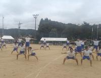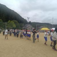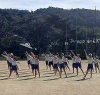 最初は「国造音頭」の練習です。「国造音頭」は、昭和32年の運動会を機として地域で親しまれている輪踊り曲です。各学年で練習を重ねてきましたが、今日は全校児童で輪になって、自分の位置を確かめながら踊る練習を行いました。