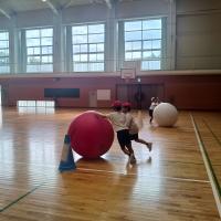 小松特別支援学校に通う同級生と居住地交流を行いました。体育館で顔合わせをした後、運動会で踊ったダンスを一緒に踊り、大玉転がしをしました。大玉転がしをした後、振り返りをしようとしたところ、子どもたちから「一緒にかけっこがしたい!!」との声が上がり、赤と白にわかれて全員でリレーを行いました。応援の掛け声もあって大変盛り上がりました。同じ地域に住む友達同士、これからも交流を続けていきたいですね。