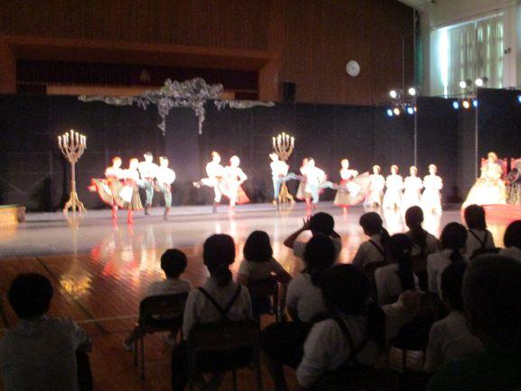 学校巡回公演事業として、谷桃子バレエ団の公演が本校の体育館で行わました。第1部では、バレエの基本動作やマイムの体験と実演が行われました。第2部では、「白鳥の湖」第2幕と第3幕が上演されました。児童や職員も参加するコーナーがあり、総合芸術としてのバレエの美しさ、楽しさを体験することができました。