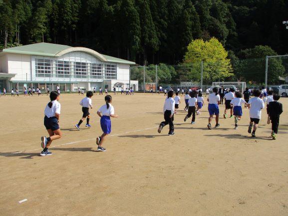 10月31日に行われる校内持久走大会に向けて、長休みの時間に運動場でマラソンタイムを実施しています。それぞれが自分のめあてに向って頑張って走っています。
