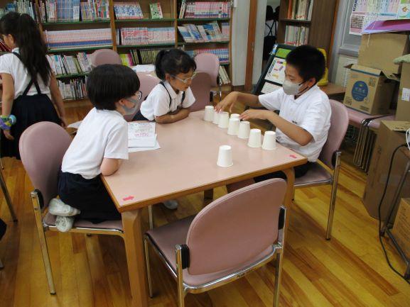 子供たちが毎年楽しみにしている「わけっ子フェスティバル」が行われました。5、6年生が工夫して考えた8つのお楽しみコーナーを、縦割りグループのペア学年(1・3年生、2・4年生)で回りました。どのコーナーも笑顔がいっぱいで、とても盛り上がっていました。
