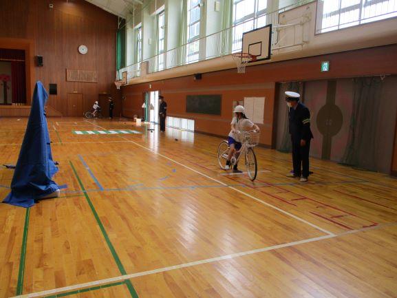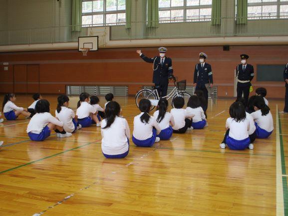 1年生と3年生の交通安全教室が行われました。3年生は正しく安全な自転車の乗り方を、1年生は道路の歩行の仕方を警察の方に教わりしました。3年生は、体育館で自転車に乗り、信号があるところでの曲がり方や安全確認の仕方を練習しました。1年生は、実際に道路に出て、横断歩道での安全確認や手をしっかり挙げて渡ることなどを練習しました。