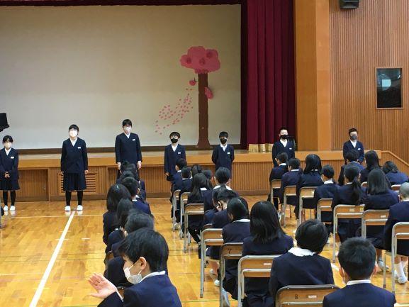 前期任命集会を開き、前期運営委員、委員会役員、学級役員の任命式を行いました。今年度の児童会目標は、「自分たちから進んで協働し、思いやりのある和気っ子」です。運営委員や各委員長がそれぞれの抱負について話す姿には、その意気込みがあらわれていました。