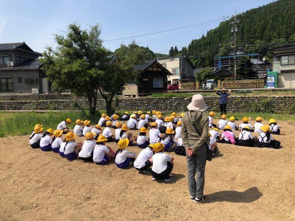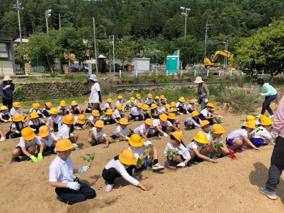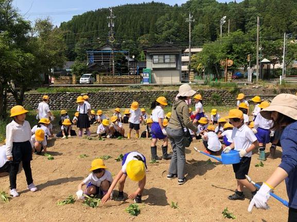 1、2年生が、さつまいもの苗植えをしました。今年も、地域の方の畑をお借りして行い、一人一人が丁寧に苗を植えました。昨年は、8月にあった大水のため、苗が流されとても残念な思いをしました。今年はそのようなことがないように、たくさん収穫できるようにと願っています。