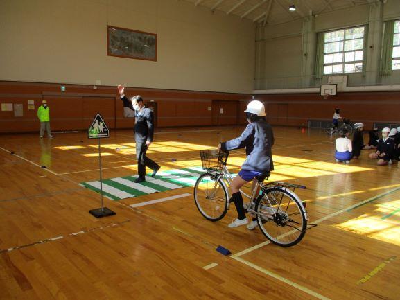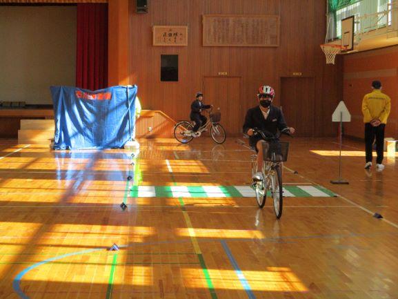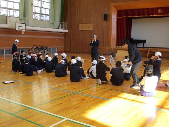 能美警察署と能美市交通安全協会の方々をお迎えし、春からの自転車通学に備えて、6年生対象の自転車教室が行われました。自転車の乗り方やルールの確認、ヘルメットの正しいかぶり方を教わった後、実際に自転車に乗り走行練習を行いました。