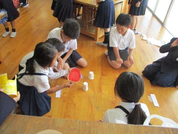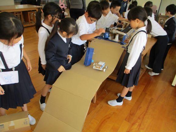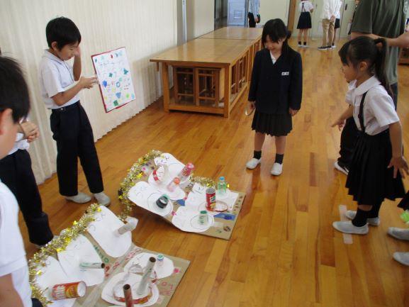 2年生が自分たちでおもちゃを作り、1年生を招待して「おもちゃランド」を開きました。2年生は,、1年生に遊び方を優しく丁寧に教えていました。1年生は、2年生が作ったおもちゃでとても楽しそうに遊んでいました。みんなとても嬉しそうでした。
