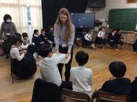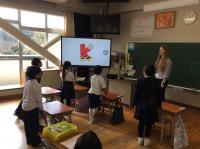 2学期より能美市に赴任されたALTの先生と、1,2年生が英語を使った活動を行いました。好きな食べ物や日本の好きなところなど子どもたちからの質問に答えていただいたり、英単語を使ったゲームをしたり、英語の歌を一緒に歌ったりして楽しみました。
