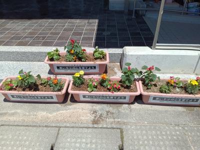 5月13日(月)小松人権擁護協議会能美部会の皆様より人権の花をいただきました。あいにくの雨でしたが、玄関前で贈呈式を行いました。人権擁護委員の皆様に教わりながら、6年生28名がいただいた花の苗(マリーゴールド、ベゴニア、サルビアなど)をプランターに植えました。玄関前がぱっと明るくなりました。花の栽培を通して思いやりの心や命を大切にしていきたいですね。人権擁護委員の皆様、ありがとうございました。