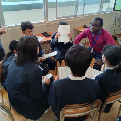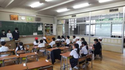 5月27日(月)、28日(火)にJAISTから留学生の方々を迎え、3~6年生が交流をしました。外国語・外国語活動の授業で学習した英語を使って質問したり答えたりしながら、交流することができました。2学期にも行う予定です。