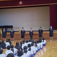 後期役員の任命集会がありました。今年度の児童会目標「何事にもねばり強くチャレンジして楽しさを見つけられる和気っ子」達成をめざし、後期の運営委員会が考えた後期のめあては「ゴールは和気っ子の笑顔」です。和気っ子が笑顔で学校生活を送れるよう、先日最初の委員会を開き、さまざまな企画を考えてくれています。みんなが笑顔でいられるためには、楽しいことだけではなく、仲良く平和なこと、感謝の気持ちをもてることなどが大事だと意見が出され、そのためにどんな企画や取組をするとよいか話し合っていました。頼もしい限りです。後期役員の皆さん、よろしくお願いします。
