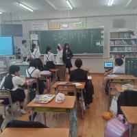 今日は、能美市赤十字奉仕団チーム20の皆様にお越しいただき、車椅子やアイマスクの体験を行いました。車椅子は実際に外に出て、二人ペアで乗り方を体験しました。また、アイマスクをつけて校内の廊下や階段を歩行しました。今回自分の体で実感することで、子どもたちはさまざまな人の状況や気持ちを考えることができたように思います。能美市赤十字奉仕団チーム20の皆様、誠にありがとうございました。