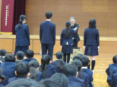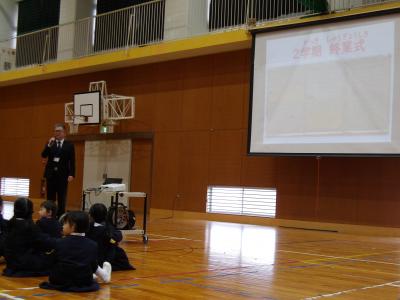 「安心・前進・協働」をキーワードに、子どもたちは学習や行事等の取組を振り返りました。和倉っ子全員、それぞれの目標に向かって「前進」できた2学期となりました。また、冬休み中の生活で気をつけることも、全校で確認しました。年末年始、安全に過ごしてほしいと思います。
