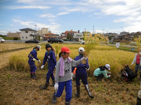 5年生の稲刈り体験 投稿日時 : 2019/09/12 wakure 5月に田植えをした田んぼの稲が順調に生長し,3・4時間目に稲刈りをしました。はじめ子どもたちは鎌で稲を刈るのに悪戦苦闘していましたが,徐々に慣れてきて,最後の方はスピードアップしていました。 {{options.likeCount}} {{options.likeCount}}