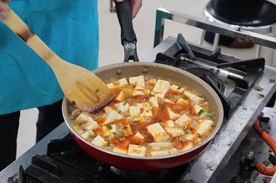 包丁の使い方や火の加減に気を付けながら、グループで協力して調理を進めました。班ごとに美味しい麻婆豆腐ができました!