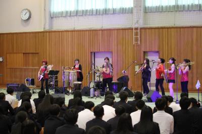 高文連文化教室が開催されました。ゲストはソン・レイナスさんです。ソン・レイナスの皆さんは、日本でも珍しいサルサバンドです。