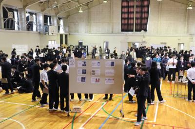 本日11月1日から7日まで「いしかわ教育ウィーク」が行われます。初日の本日は、「MAJIでWAJI活~探究学習発表会~」と題して,二年生の探究学習の発表会が行われました。