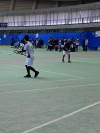 ソフトテニスという競技や部活動に前向きに取組み、日々技術的にも人間的にも成長しようと部員全員で切磋琢磨し合い頑張っています。現在、中学生や小学生ともコートを譲り合って練習しています。