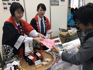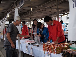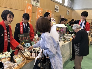 盛岡商業高校生と一緒に販売