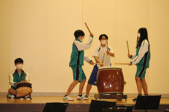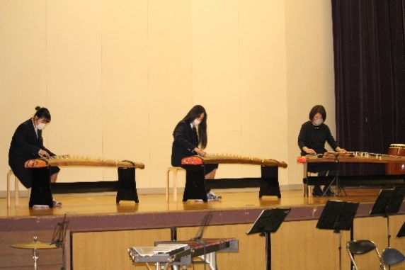 吹奏楽部、華道部、茶道部、美術部、英語部、ダンス部、筝曲部、和太鼓部が、それぞれ各自の部の紹介を実演などを