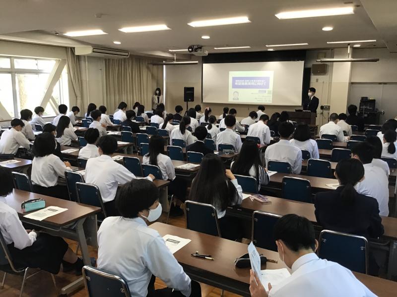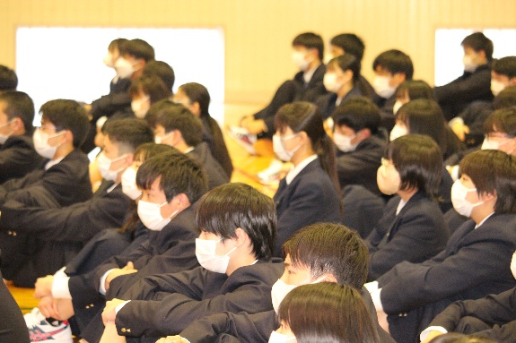 共通テストに向けて、部活動引退後の時間の使い方や目標設定について、お話ししていただき、生徒たちは学習への気持ちを新たにしているようでした。