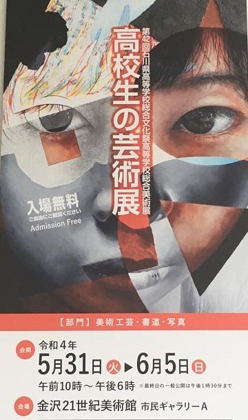 5月31日~6月5日まで、金沢21世紀美術館にて「高校生の芸術展」が開催され、輪島高校は美術部15名全員が作品を出品しました。
