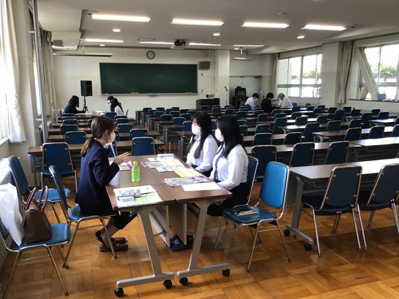 3年ビジネスコースの進学希望の生徒は、進路別に専門学校や短大・大学の説明を聞きました。