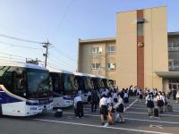 平野校長と、生徒会長の北出さんより選手への激励の言葉があり、選手の皆さんは凛々しい表情で聞いていました。