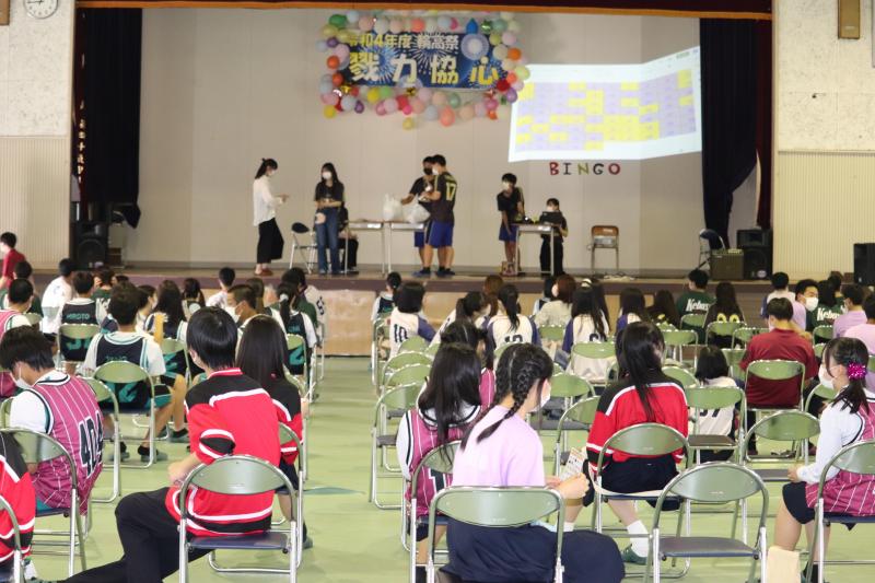 感染対策が緩和され、4年ぶりに全校生徒が体育館に一斉に集まり対面式が行われました。