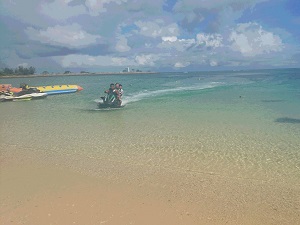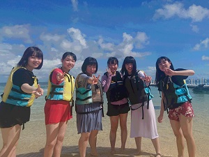 週末に天気がくずれる予報で今日の天気も心配されましたが、3日目の沖縄も晴れています。しかし、湿度がぐっと上がり蒸し暑い一日となりました。午前中は生徒たちがとても楽しみにしていた選択コース別研修です。生徒たちはそれぞれ『プライベートビーチでマリンスポーツ』『青の洞窟でシュノーケリング』『マングローブ観察&カヌー体験』『シーサー絵付け・とんぼ玉アクセサリー作り』のいずれかを体験しました。マリン体験では初めてのドラゴンボードにキャーキャー絶叫し、「大自然に全身で飛び込んでいけてすごく楽しかった。」と、スケールの違う青い海と白い砂浜で修学旅行一の笑顔を見せてくれました。青の洞窟では、最初緊張していた生徒も、その幻想的な光景にはっと息をのみ、「きれ~ぃ!!!!」と感動していました。また、めずらしいきれいな魚たちが人懐っこく寄ってくるそうで、とても楽しかったと話してくれました。