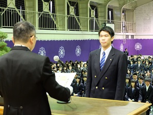 8人という少ない人数で、石川県初となる優秀校に選ばれ、東京公演の出演が決まった快挙に、梶市長からは驚きの声とともに熱い激励の言葉をいただきました。和太鼓部部長はチームの心が一つになって、モットーに掲げていた“明るく元気に”が実現できた、東京公演でも多くの方々に楽しんでいただきたいと話していました。