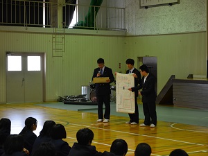 全国総文での優秀賞・文化庁長官賞受賞をうけて、和太鼓部は輪島市役所へ表敬訪問し、梶市長に受賞報告を行いました。