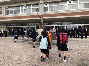 伊那市で行われた全国総文という初めての大きな舞台にみんなとても緊張していましたが、演奏後、多くの方々から「感動した」「涙が出た」との感想をいただくことができました。生徒たち自身がその大舞台を楽しみ、自分達らしい一番の演奏をすることができたからだと思います。応援して下さった保護者の皆様、地域の皆様、そして卒業生の皆様、本当にありがとうございました。