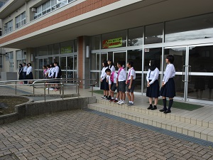 また、輪島市立河井小学校の児童と共に、朝の挨拶運動も行いました。