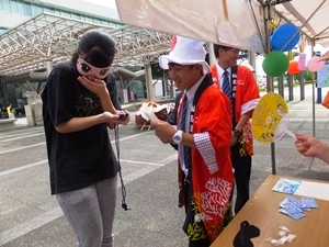 のと里山空港開港記念イベントにて、総合学科3年生がチャレンジショップ(販売実習)や風船配り、ミニゲームなどを行いました。