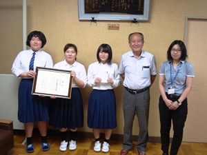 7月9日に行われた民家の甲子園県大会にて特別賞を受賞した放送部が、代表を務める山多さんより改めて表彰状を受け取りました。