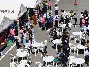 市内まんなか商店街で行われた「第3回地域と障害のある人のふれあい交流パーティー」に総合学科3年生9名がスタッフとしてボランティアを行いました。