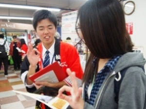 オリジナル商品「いしるくっきぃ」のふるまい(アントレプレナー同好会)