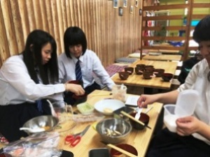ロシア少年の翼が来校し、琴の体験や輪島塗箸の絵付け等を通し交流しました。